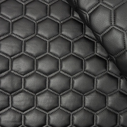 Hexagon Quilted Vinyl Fabric is a premium automotive upholstery vinyl featuring a stitched hexagon (honeycomb) pattern layered over foam backing. It provides a luxurious appearance, enhanced comfort, and superior durability, making it ideal for high-end and custom car interiors.